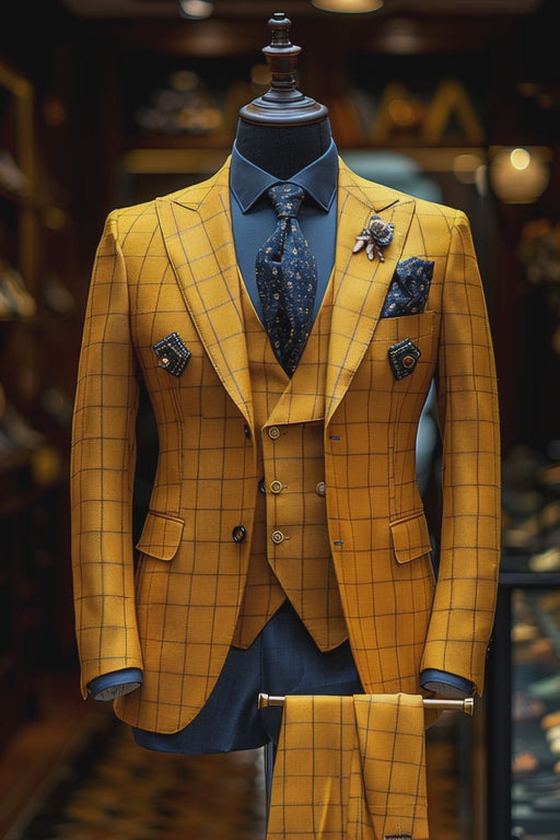 Bold Yellow Wool Suit – Tailored Fit for Men