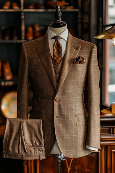 Brown Checked Linen Suit – Custom Made & Made to Measure