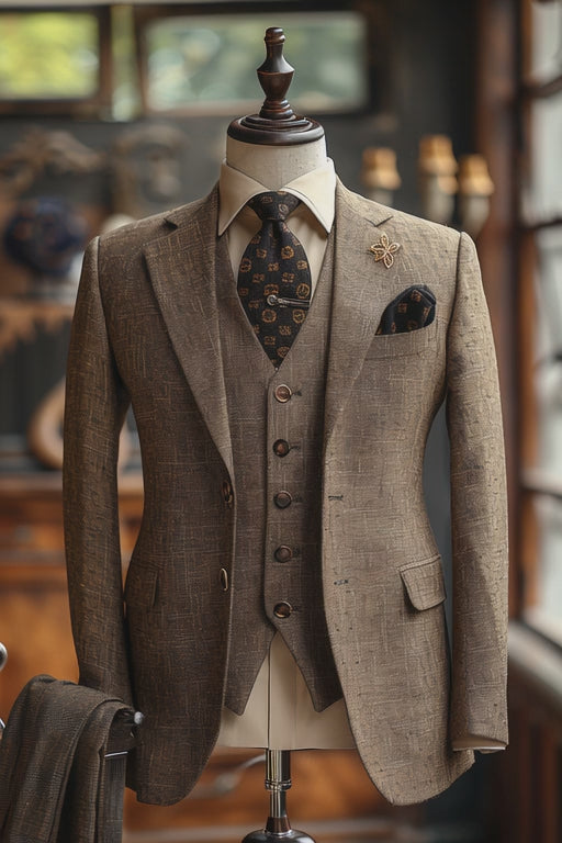 Brown Checked Linen Suit – Custom Made & Made to Measure